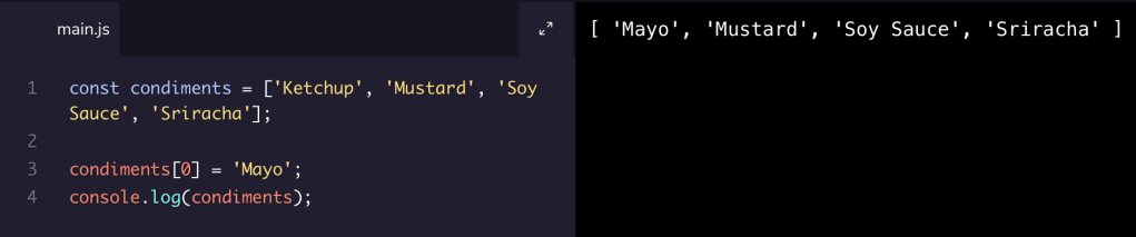 การประกาศ array ด้วย let สามารถปรับปรุงสมาชิกใน array ได้