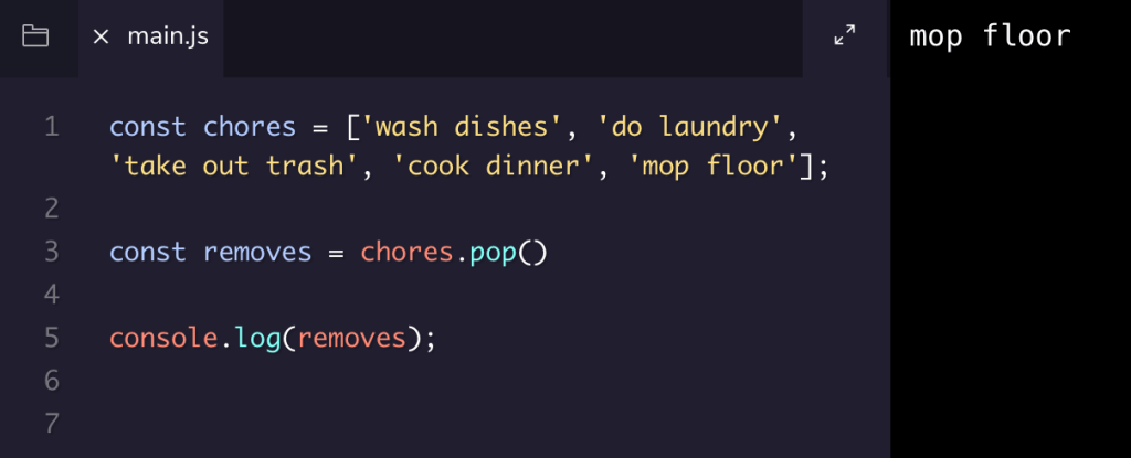 - เรียกใช้งานเหมือน function เรียกชื่อ array ก่อน ตามด้วย method .pop( )