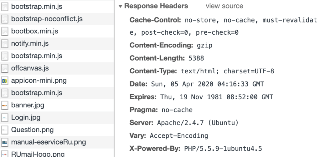 ข้อมูลใน Response Headers เช่น