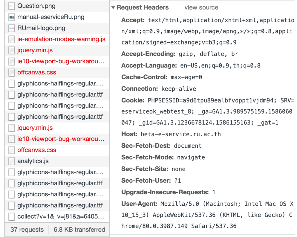 ข้อมูลใน Request Headers เช่น