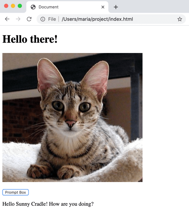 Prompt Box จะต้องได้รับ input จากผู้ใช้ เมื่อ prompt box แสดงบนหน้าเว็บเพจ ผู้ใช้จะต้องใส่ input จากนั้นกดเลือก OK หรือ Cancel เพื่อใช้งานเพจต่อไป