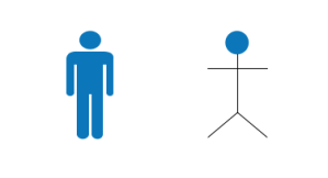 สัญลักษณ์คือรูปคน (stick man icon) จริงๆแล้วจะใช้เป็นรูปคนที่วาดแบบง่ายๆ คือ หัวกลมๆ แขนขาขีดเป็นเส้นตรง หรือจะเป็นรูปคนแบบที่แสดงนี้ก็ได้ ระบุบทบาทของ actor ด้านล่างสัญลักษณ์
