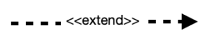ความสัมพันธ์แบบ <<extend>> คือ ความสัมพันธ์ที่ Use Case หนึ่งถูกกระตุ้นหรือรบกวนด้วยบางเหตุการณ์ จนอาจทำให้การทำงานของ Use Case นั้นเปลี่ยนไป หรือกรณีที่ Use Case หนึ่งต้องพึ่งพาคุณสมบัติหรือความสามารถของ Use Case ในการบรรลุการทำงานของตัวเอง เราสามารถเขียนสิ่งที่กระตุ้นหรือสิ่งที่ต้องพึ่งพาคุณสมบัติของ Use Case อื่นได้ในรูปแบบของ Use Case อีกหนึ่งอัน เรียกว่า Extending Use Case ส่วน Use Case ที่ถูกกระตุ้นหรือถูกรบกวนเรียกว่า Base Use Case