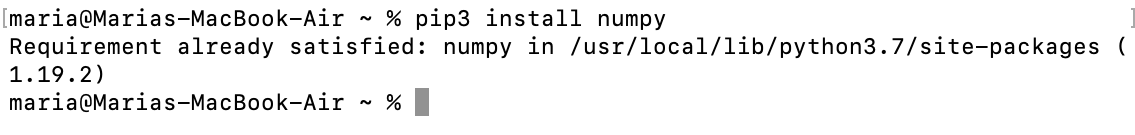หากเรามี NumPy อยู่แล้ว บน terminal จะขึ้นข้อความด้านล่างนี้