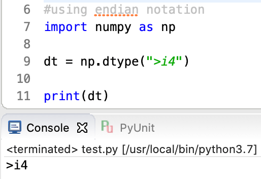 การกำหนด endian notation มี 2 แบบ คือ little-endian (“<“) และ big-endian (“>”)