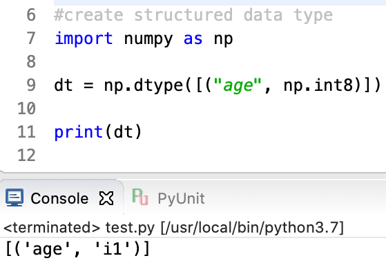 กำหนดขนาดความจำสำหรับเก็บข้อมูลชนิด i, u, f, S, U สามารถใช้ได้ทั้งตัวย่อของ NumPy หรือระบุชนิดข้อมูลตามขนาด