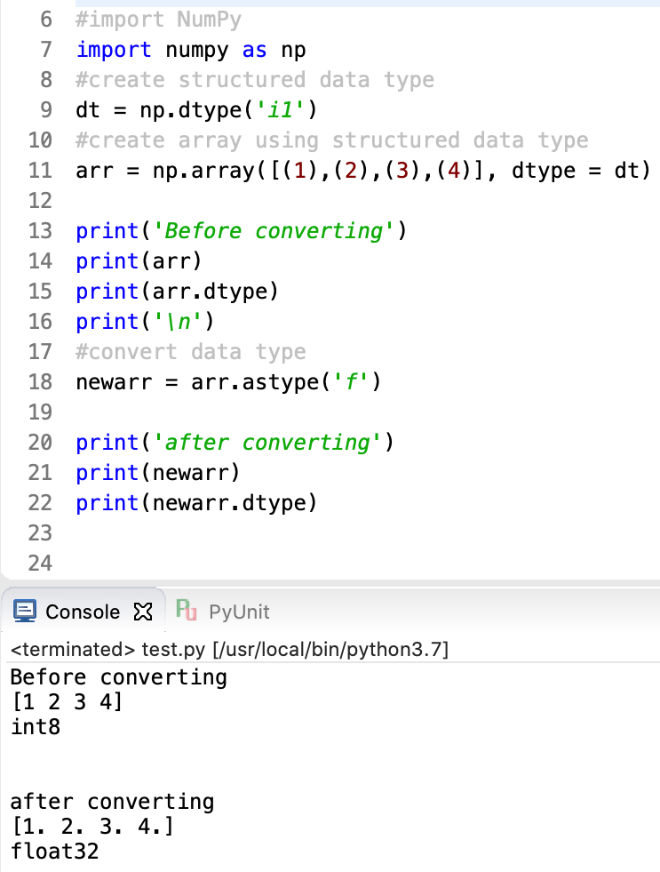 วิธีที่ดีที่สุดคือการคัดลอก array นั้นออกมาโดยใช้ method ชื่อ astype()