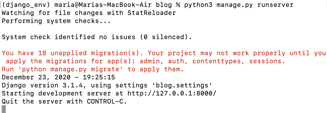 (django_env) maria@Marias-MacBook-Air blog % python3 manage.py runserver