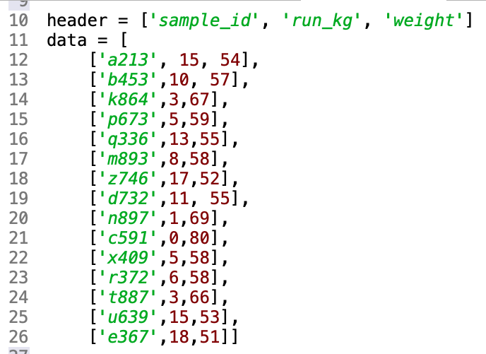 header = [‘sample_id’, ‘run_kg’, ‘weight’]