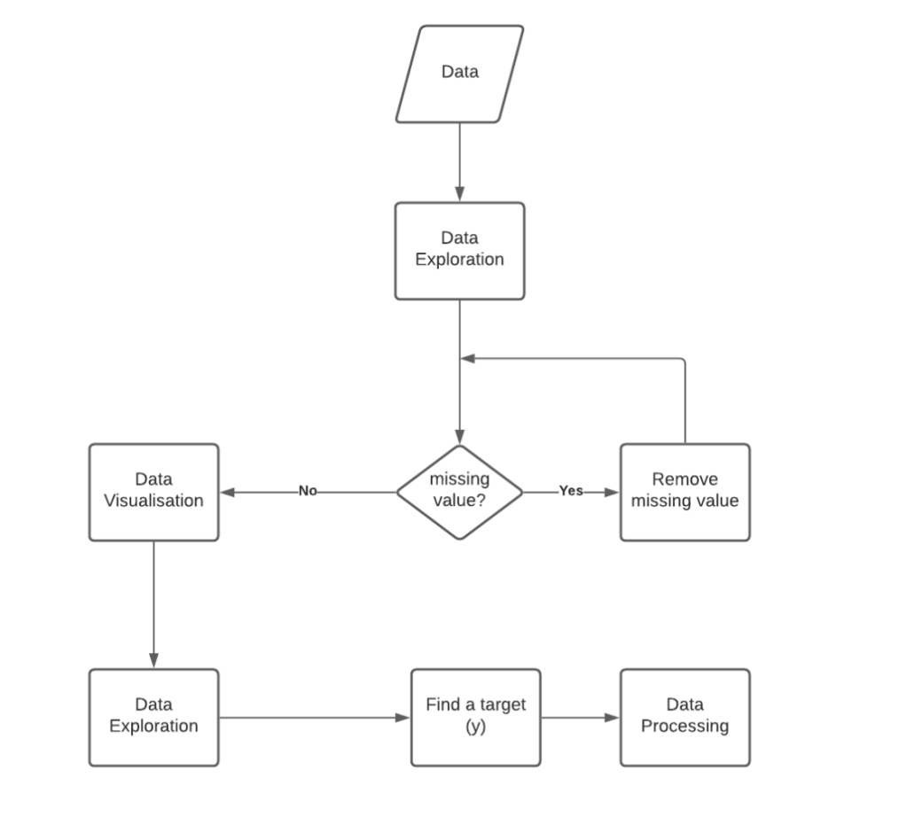 เนื่องจาก dataset ที่เรานำมาใช้ไม่มี missing value หมายความว่า dataset นี้ค่อนข้าง clean พอสมควร หลัง จากนั้นเราได้ทำ data visualisation เพื่อดูความสัมพันธ์ของค่าในคอลัมน์ต่างๆ และดูว่า target ที่เราต้องหา คือตัวไหน