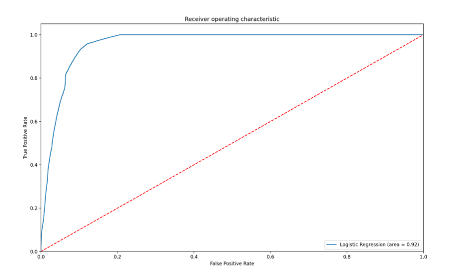 ROC Curve เป็นอีกเครื่องมือหนึ่งที่ใช้สำหรับตรวจสอบความแม่นยำของโมเดลที่มีข้อมูลแบบ binary classifiers โมเดลที่มีความแม่นยำสูง เส้น Logistic Regression จะอยู่ห่างจากเส้น ROC curve ให้มากที่สุด (อยู่มุมซ้ายบนของ chart)